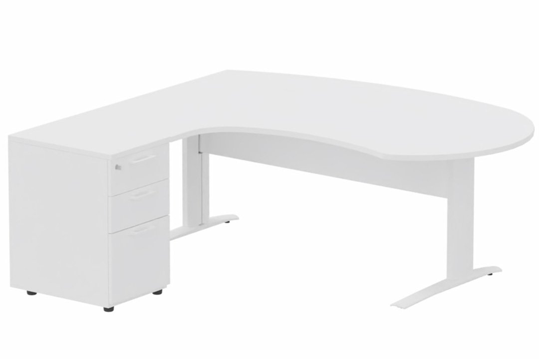 K1 VDF bois compact 90° manager 190x141x104x60cm sur caisson HB mélamine 3 tiroirs, plateau blanc, structure blanc