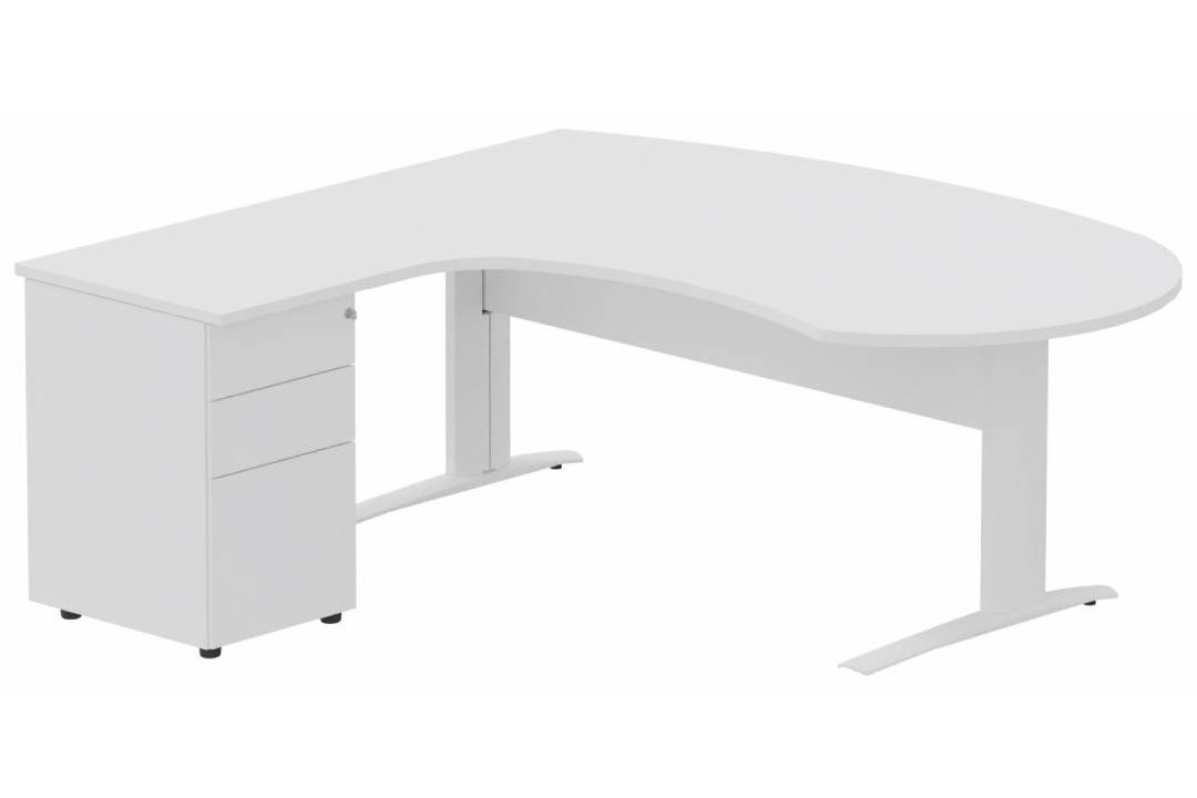 K1 VDF bois compact 90° manager 190x141x104x60cm sur caisson HB métal 3 tiroirs, plateau blanc, structure blanc