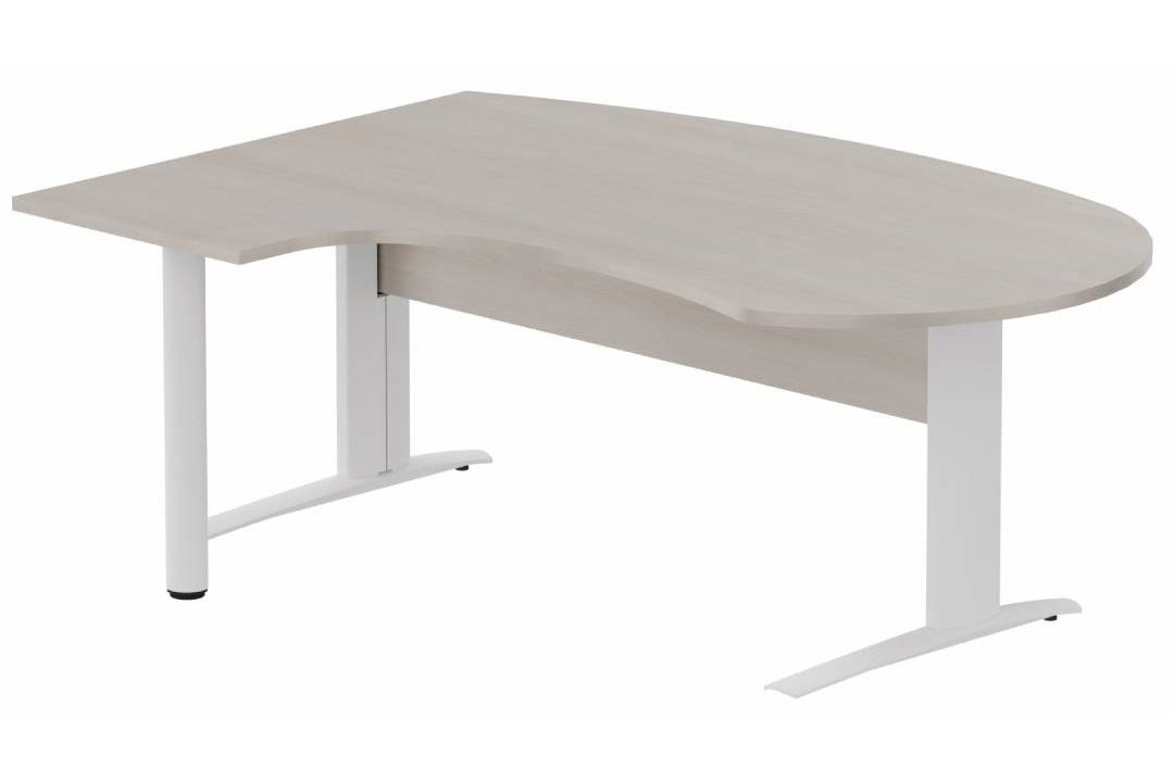 K1 VDF bois compact 90° manager 190x141x104x60cm sur pied de soutien, plateau acacia, structure blanc
