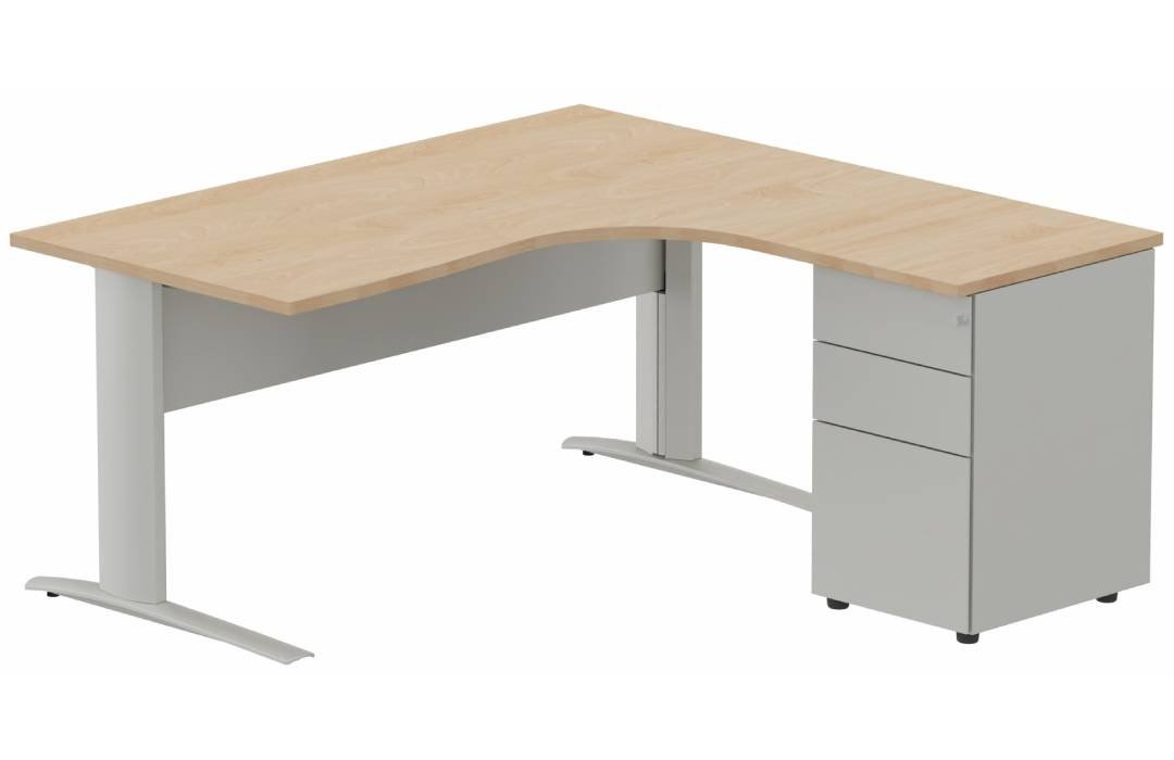 K1 VDF METAL Compact 90° asymétrique 160x162x80/60cm retour à droite avec caisson HB métal 3 tiroirs hêtre/aluminium