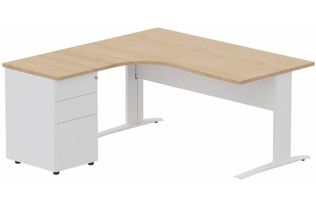 K1 VDF METAL Compact 90° asymétrique 160x162x80/60cm retour à gauche avec caisson HB métal 3 tiroirs hêtre/blanc