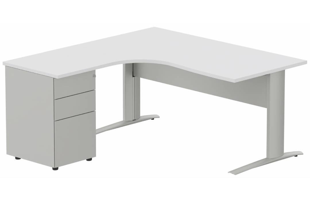 K1 VDF METAL Compact 90° asymétrique 180x162x80/60cm retour à gauche avec caisson HB métal 3 tiroirs blanc/aluminium - sur d