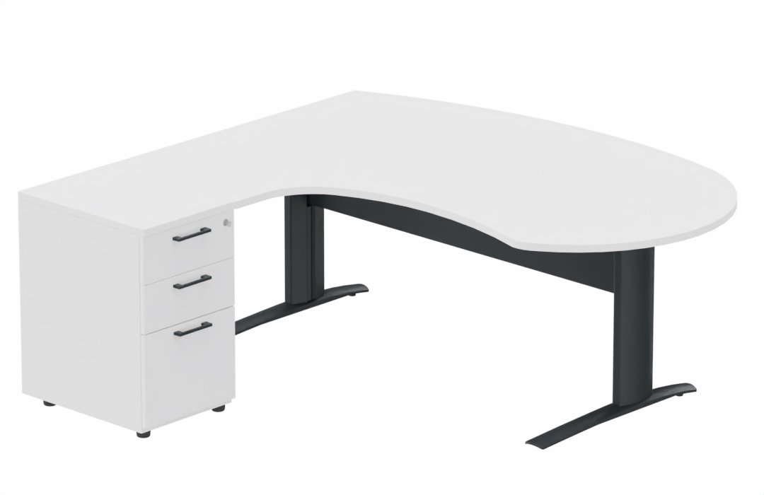 K1 VDF métal compact 90° manager 190x141x104x60cm sur caisson HB mélamine 3 tiroirs, plateau blanc, structure anthracite