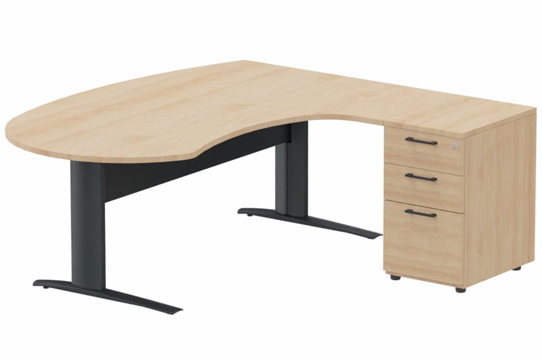 K1 VDF métal compact 90° manager 190x141x104x60cm sur caisson HB mélamine 3 tiroirs, plateau hêtre, structure anthracite