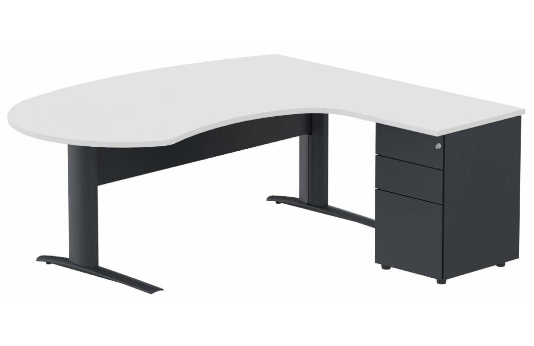 K1 VDF métal compact 90° manager 190x141x104x60cm sur caisson HB métal 3 tiroirs, plateau blanc, structure anthracite