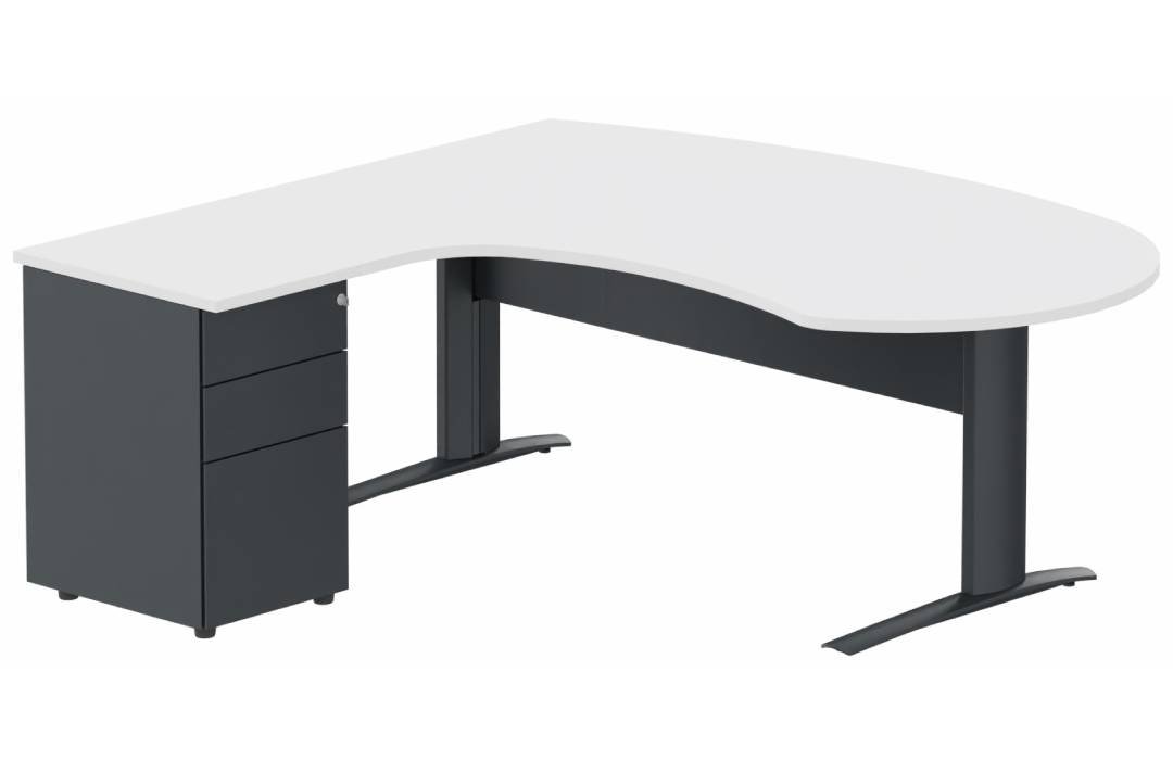 K1 VDF métal compact 90° manager 190x141x104x60cm sur caisson HB métal 3 tiroirs, plateau blanc, structure anthracite