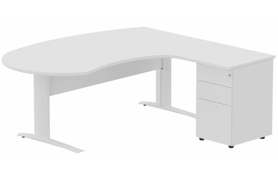 K1 VDF métal compact 90° manager 190x141x104x60cm sur caisson HB métal 3 tiroirs, plateau blanc, structure blanc