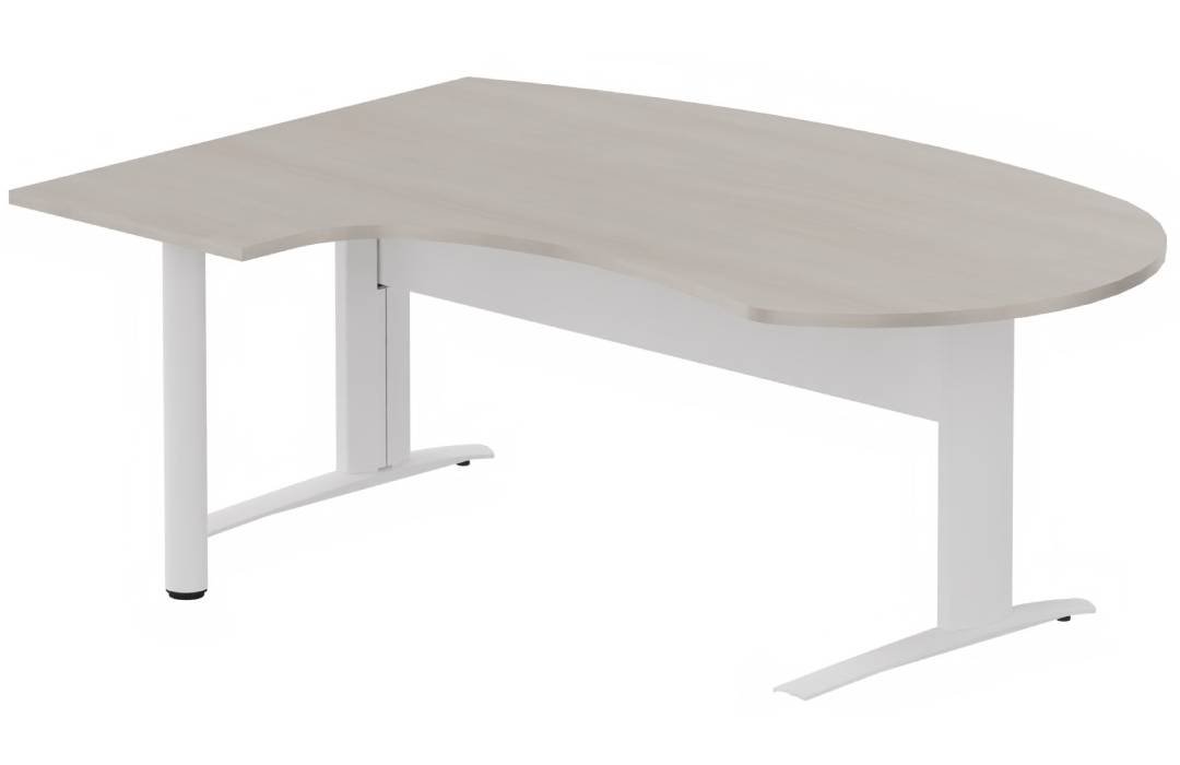 K1 VDF métal compact 90° manager 190x141x104x60cm sur pied de soutien, plateau acacia, structure blanc