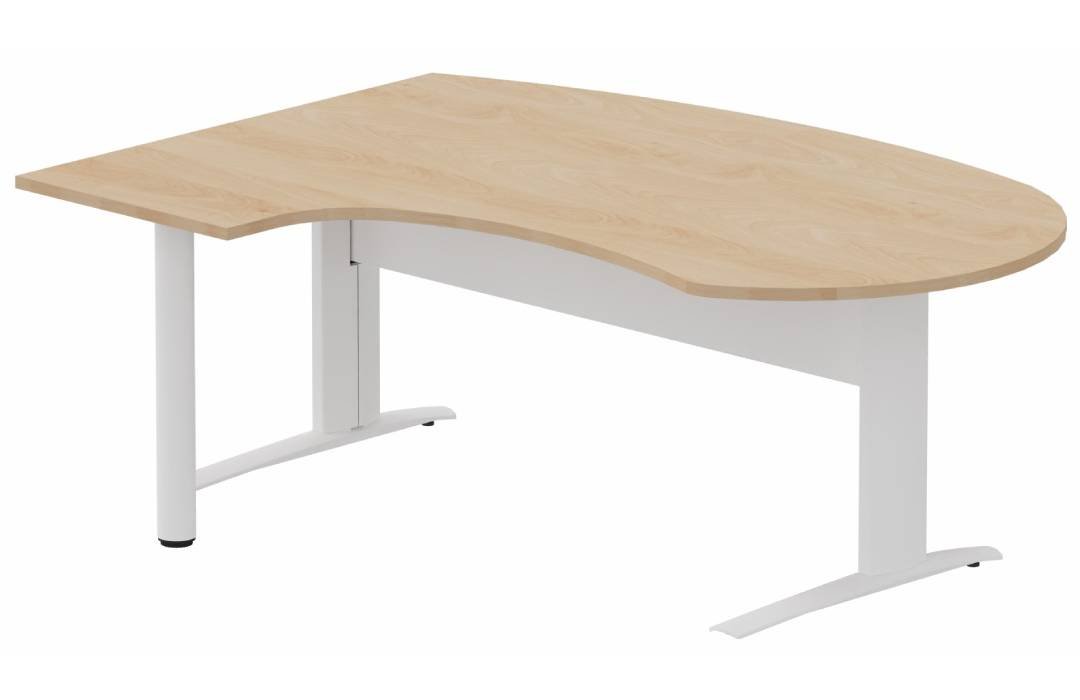 K1 VDF métal compact 90° manager 190x141x104x60cm sur pied de soutien, plateau hêtre, structure blanc