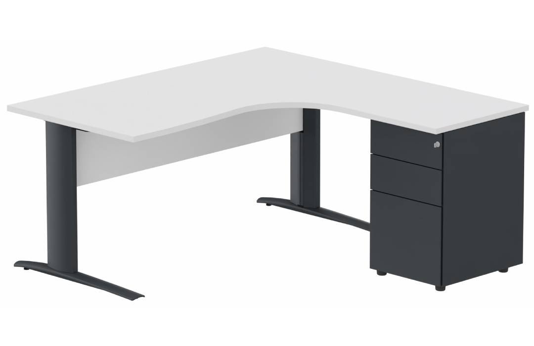 K1 Voile de fond Bois- Plan compact 90° asymétrique 160x162x80/60cm avec caisson HB métal 3 tiroirs - retour à droite -Finitions : PLATEAUX: BLANC (BL) / PIETEMENTS: ANTHRACITE (AN) / CAISSONS METALLIQUES: ANTHRACITE (AN)