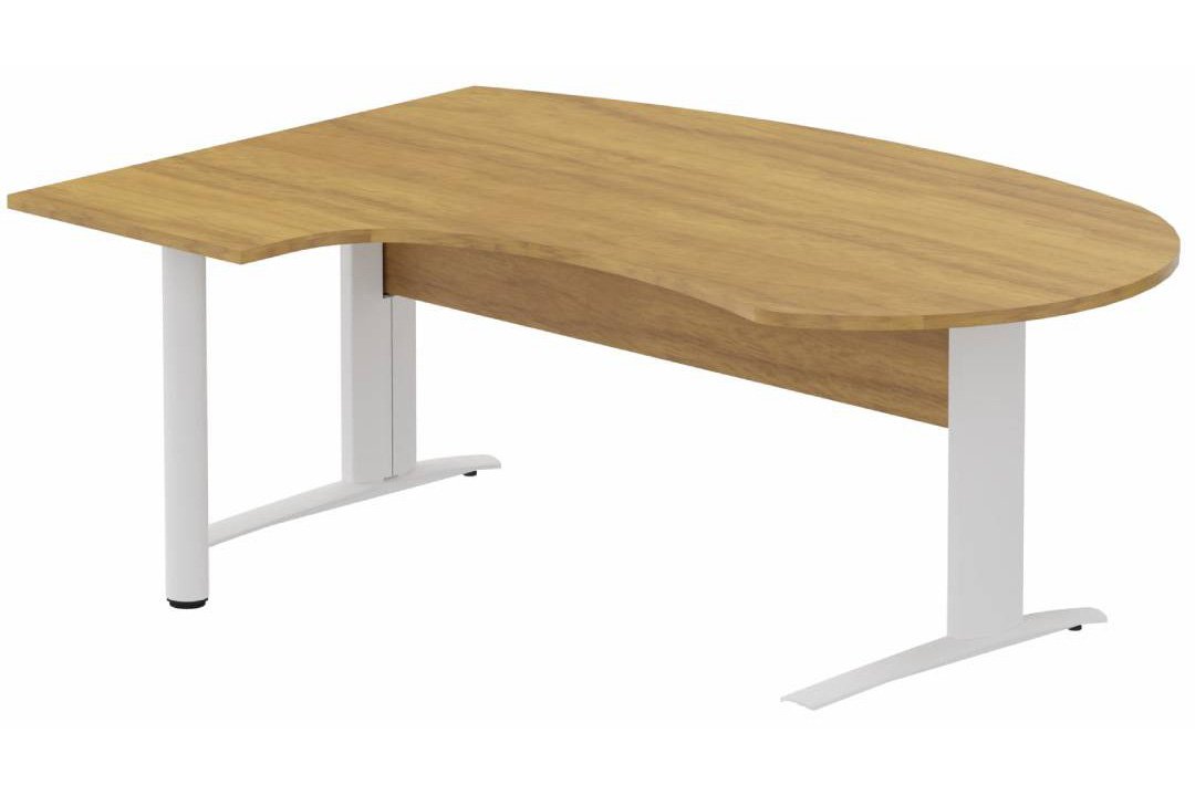 K1 Voile de fond Bois- Plan compact 90° asymétrique Manager 190x141x104/60cm sur pied de soutien - retour à gauche -Finitions : PLATEAUX: NOYER (NO) / PIETEMENTS: BLANC (BL)