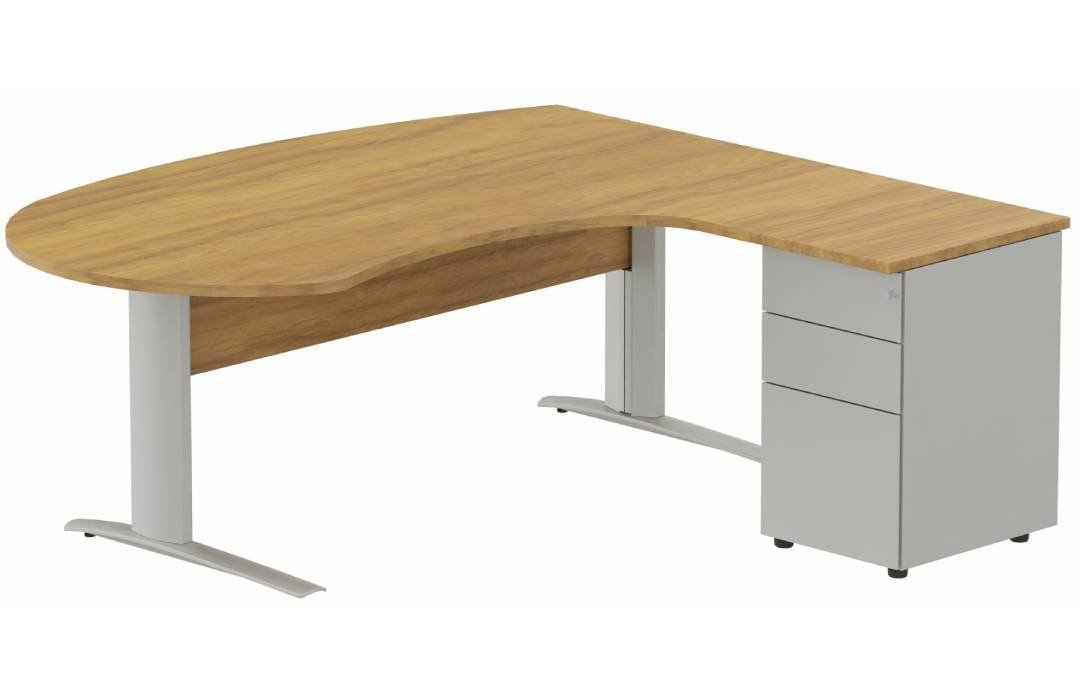 K1 Voile de fond Bois- Plan compact 90° asymétrique Manager 190x183x104/60cm avec caisson HB métal 3 tiroirs - retour à droite -Finitions : PLATEAUX: NOYER (NO) / PIETEMENTS: ALUMINIUM (AL) / CAISSONS METALLIQUES: ALUMINIUM (AL)