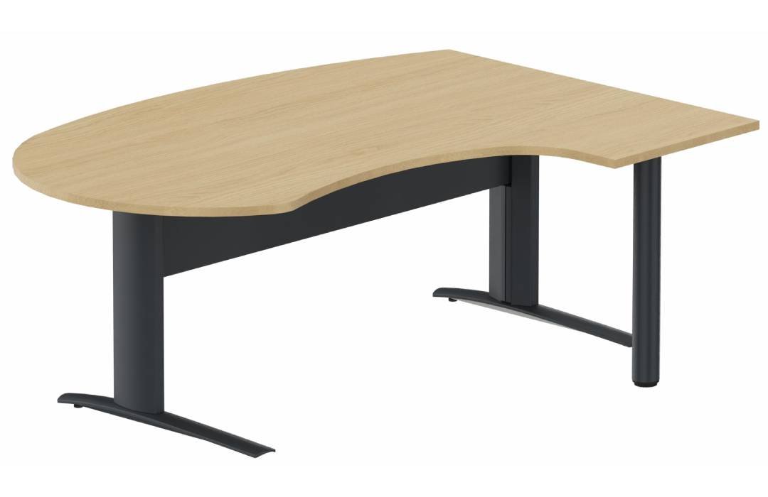 K1 Voile de fond Métal - Plan compact 90° asymétrique Manager 190x141x104/60cm sur pied de soutien - retour à droite -Finitions : PLATEAUX: CHENE (CE) / PIETEMENTS: ANTHRACITE (AN)
