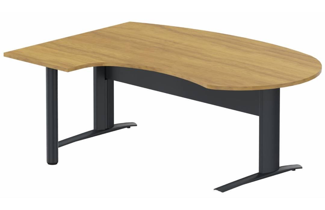 K1 Voile de fond Métal - Plan compact 90° asymétrique Manager 190x141x104/60cm sur pied de soutien - retour à gauche -Finitions : PLATEAUX: NOYER (NO) / PIETEMENTS: ANTHRACITE (AN ) /