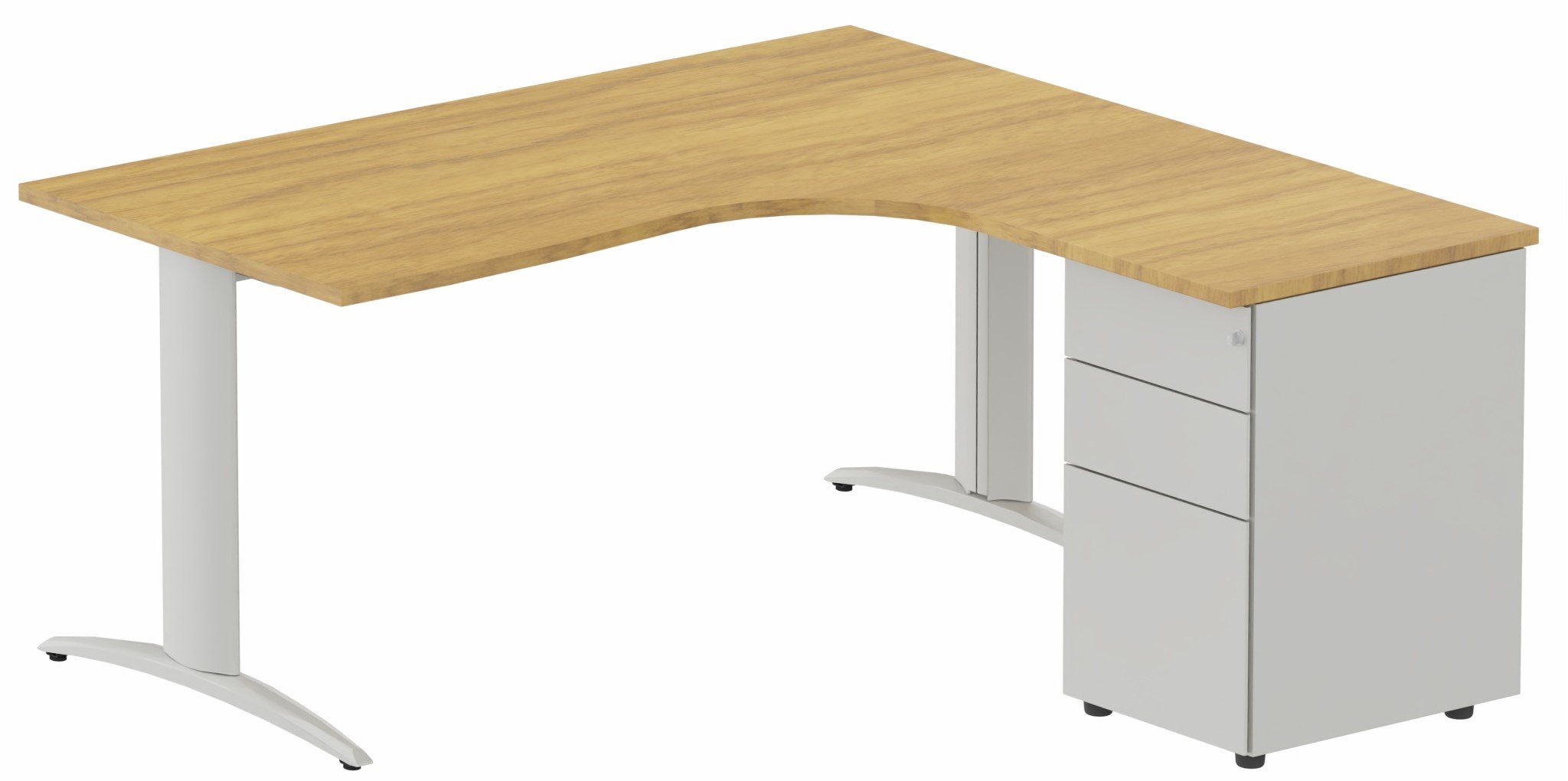 K2 Compact 90° asymétrique 160x162x80/60cm retour à droite avec caisson HB métal 3 tiroirs noyer / alluminium