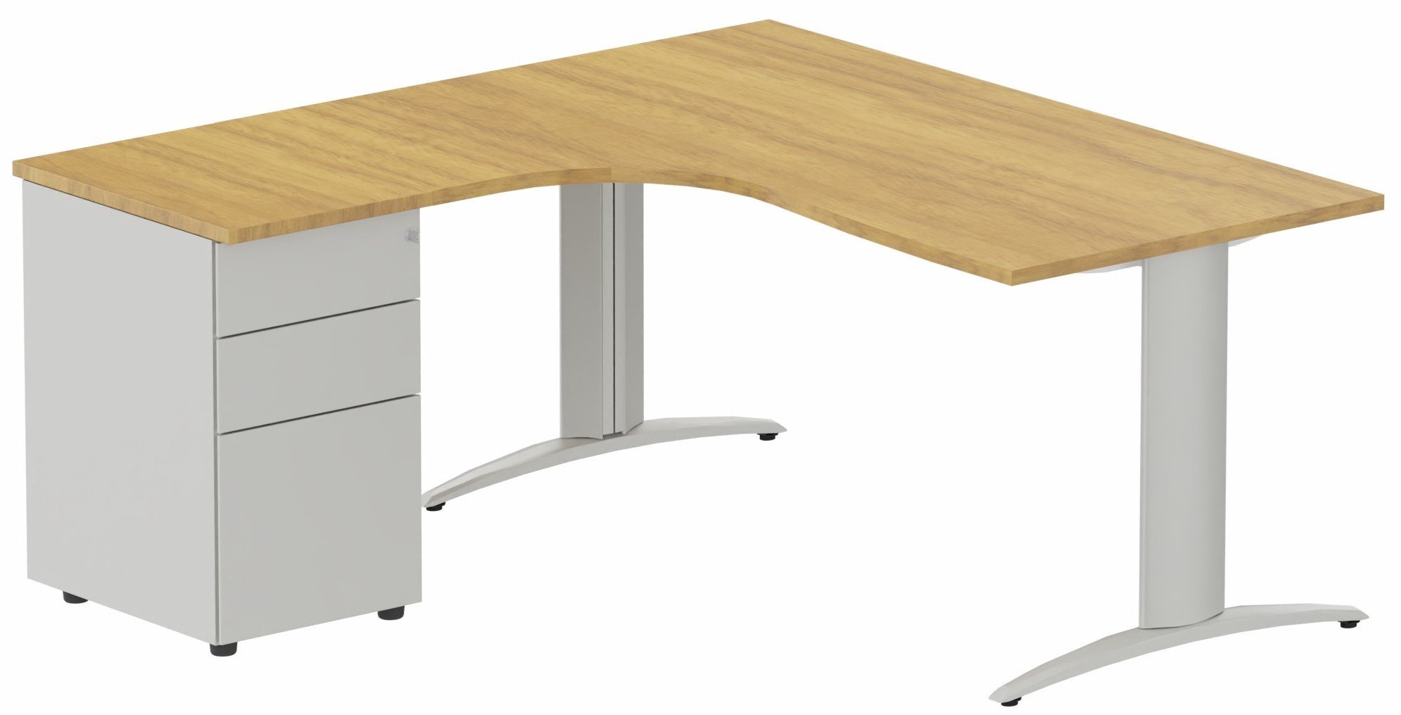 K2 Compact 90° asymétrique 160x162x80/60cm retour à gauche avec caisson HB métal 3 tiroirs noyer /aluminium