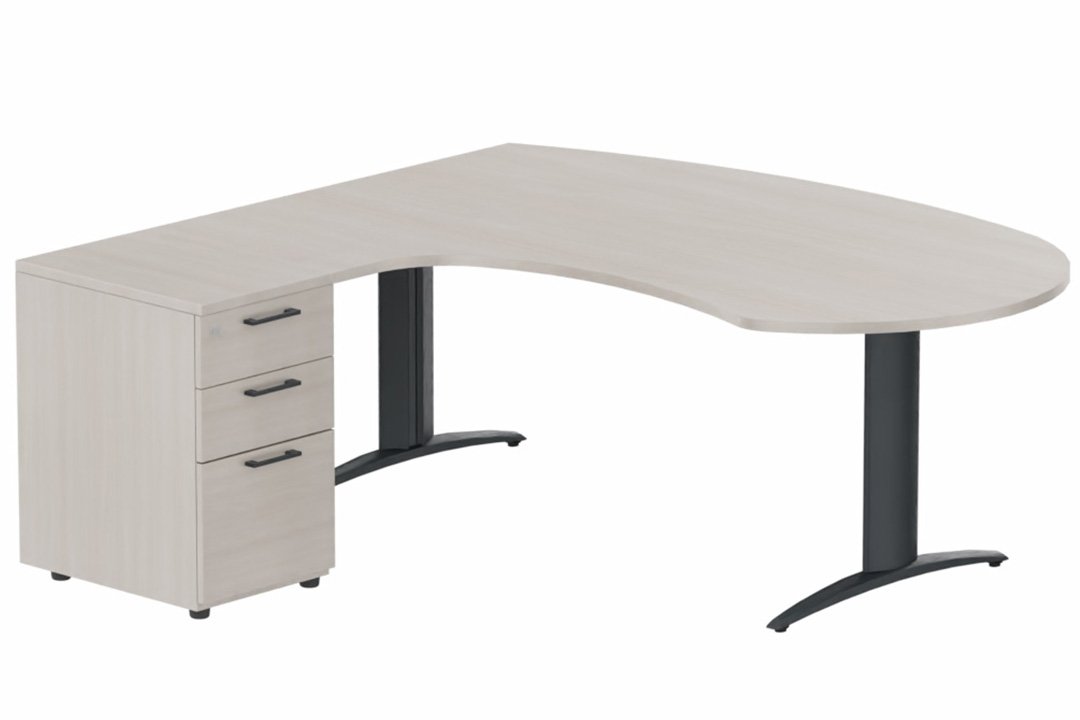 K2 compact 90° manager 190x141x104x60cm sur caisson HB mélamine 3 tiroirs, plateau acacia, structure anthracite