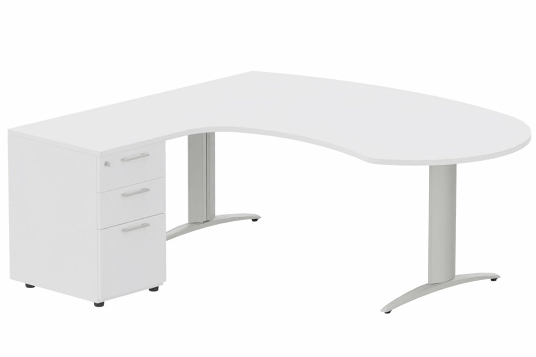 K2 compact 90° manager 190x141x104x60cm sur caisson HB mélamine 3 tiroirs, plateau blanc, structure aluminium