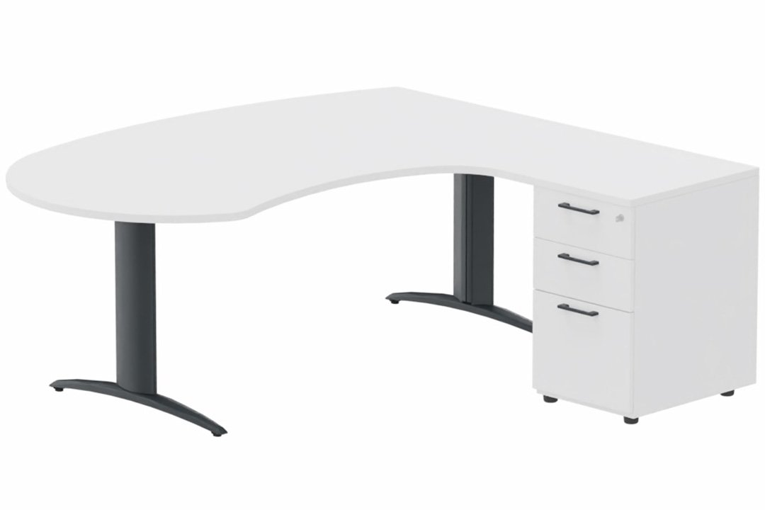 K2 compact 90° manager 190x141x104x60cm sur caisson HB mélamine 3 tiroirs, plateau blanc, structure anthracite