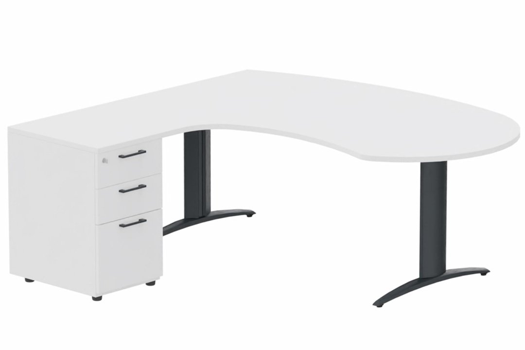 K2 compact 90° manager 190x141x104x60cm sur caisson HB mélamine 3 tiroirs, plateau blanc, structure anthracite