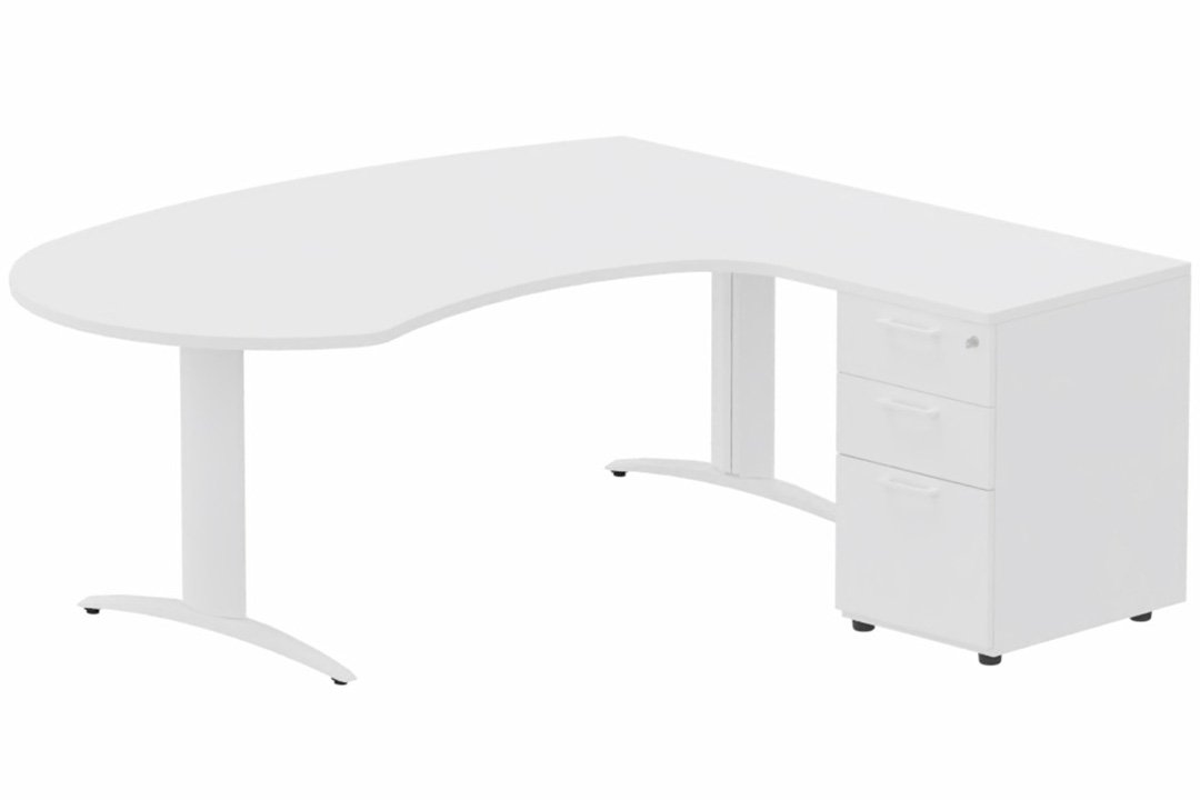 K2 compact 90° manager 190x141x104x60cm sur caisson HB mélamine 3 tiroirs, plateau blanc, structure blanc