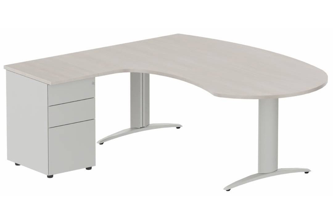 K2 compact 90° manager 190x141x104x60cm sur caisson HB métal 3 tiroirs, plateau acacia, structure aluminium