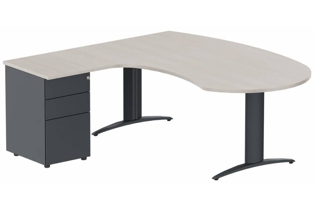 K2 compact 90° manager 190x141x104x60cm sur caisson HB métal 3 tiroirs, plateau acacia, structure anthracite