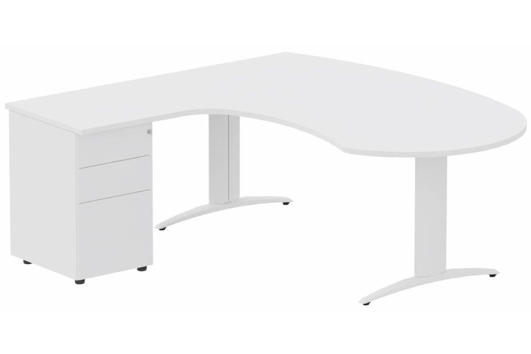 K2 compact 90° manager 190x141x104x60cm sur caisson HB métal 3 tiroirs, plateau blanc, structure blanc