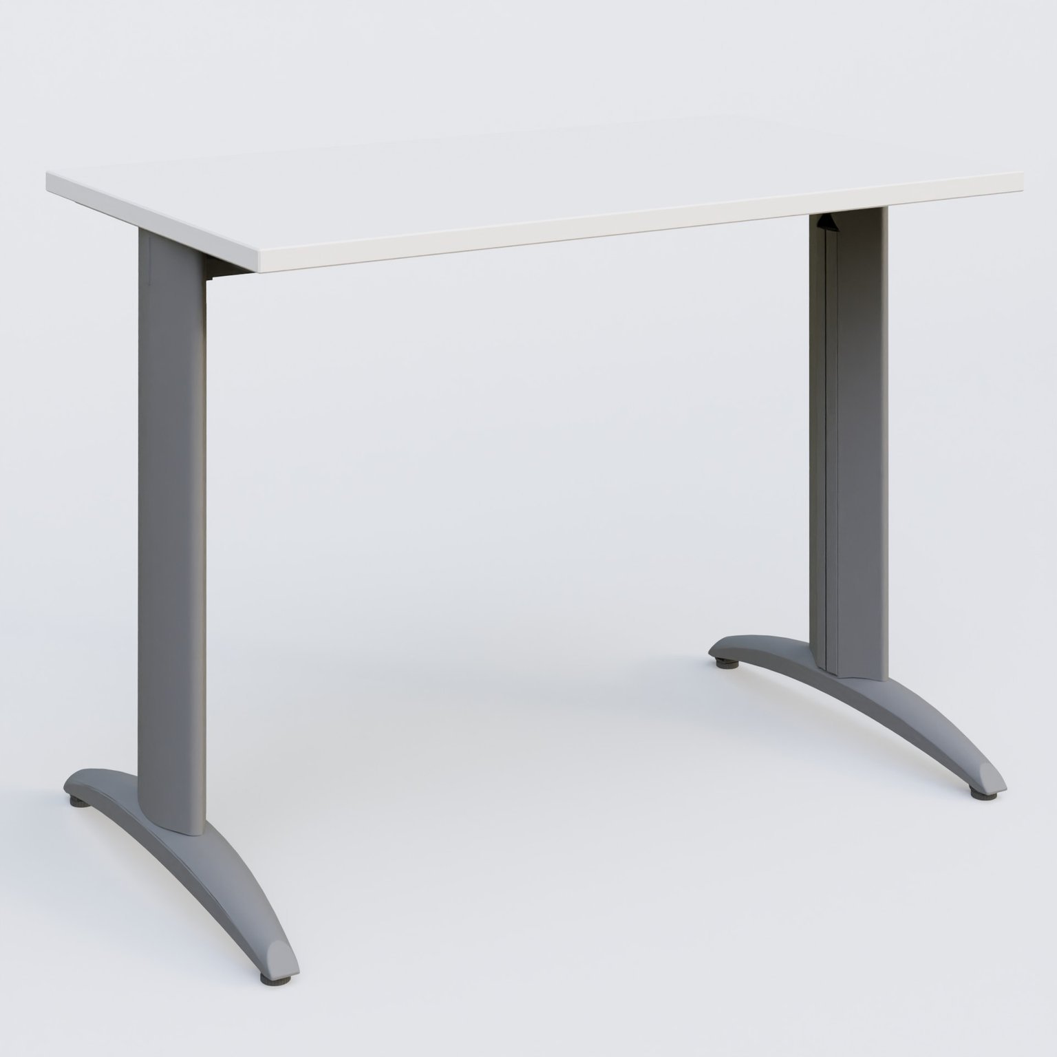 K2 Plateau droit 100x60 pieds fixe. Plateau Blanc et pietement Aluminium.