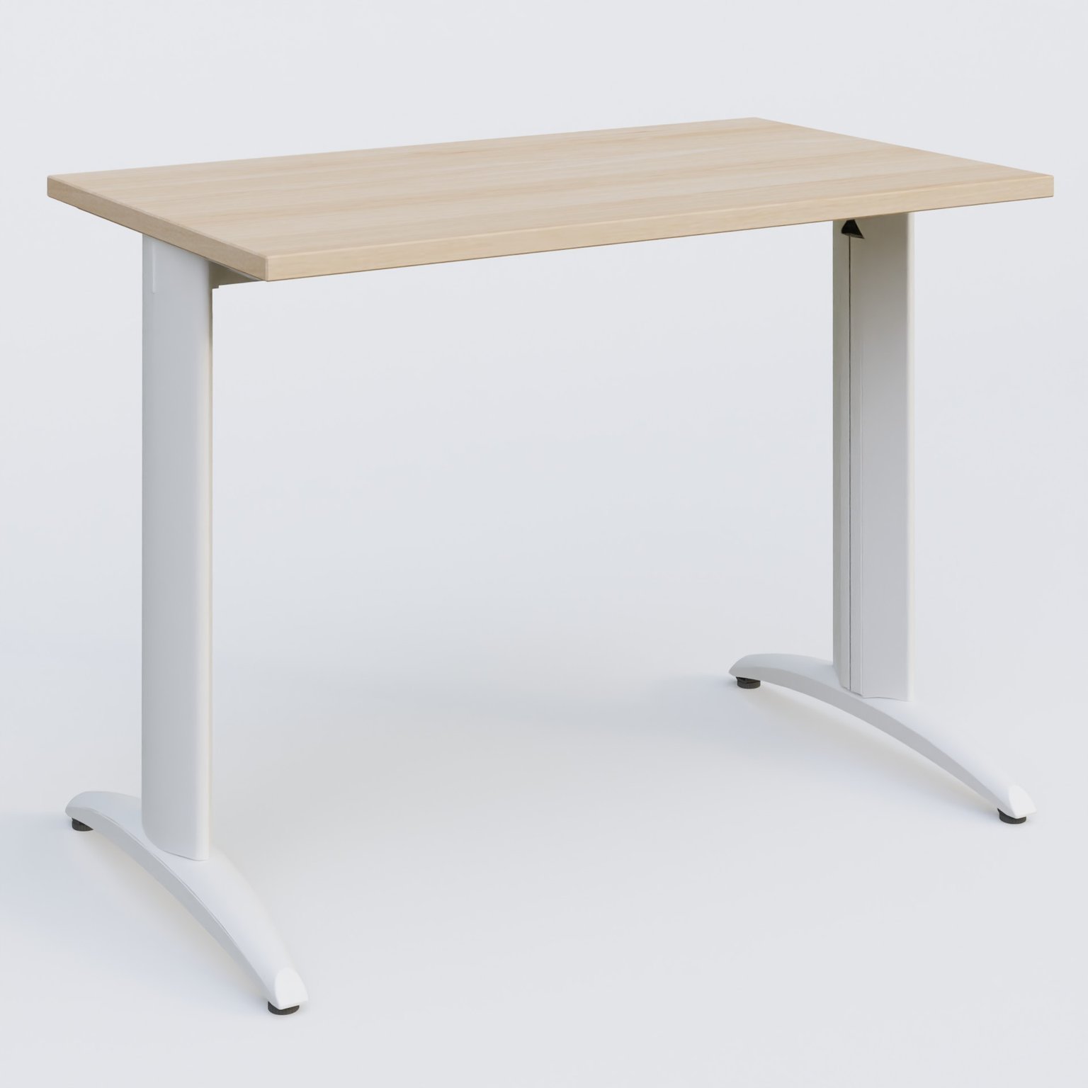 K2 Plateau droit 100x60 pieds fixe. Plateau Hêtre et pietement Blanc.