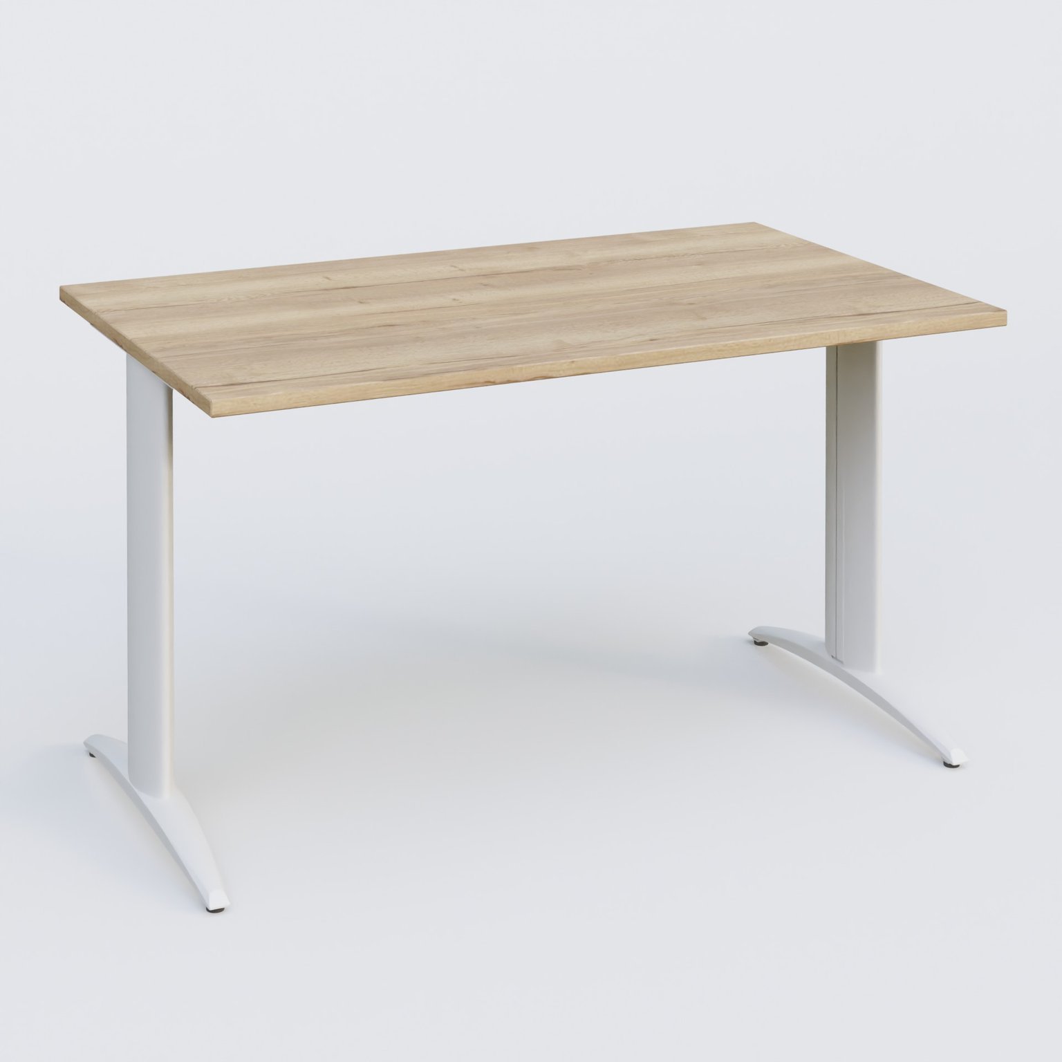 K2 Plateau droit 140x70 pieds fixe. Plateau Chêne naturel et pietement Blanc