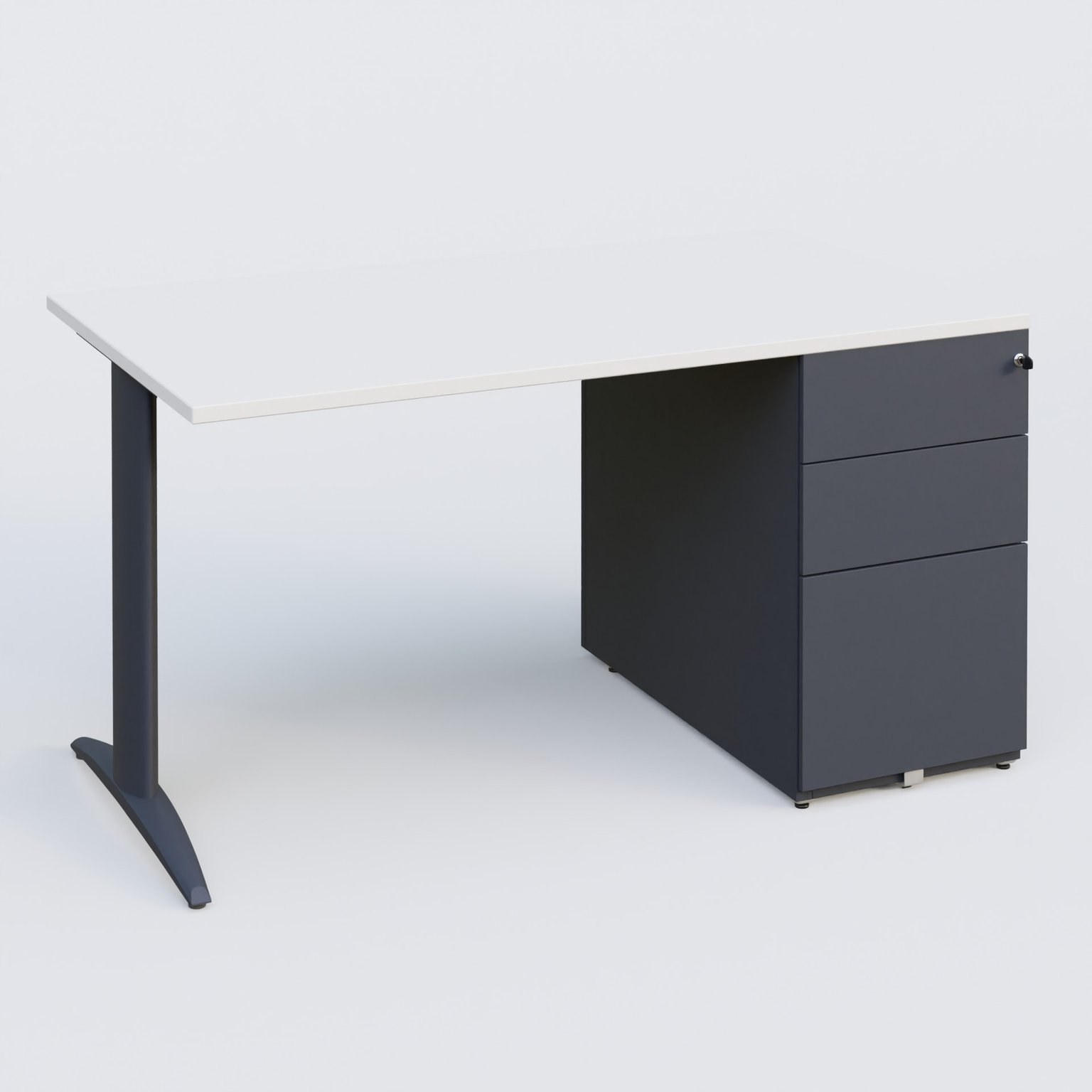 K2 Plateau droit 140x80 avec caisson métalique sous le plateau. Plateau Blanc et pietement Anthracite