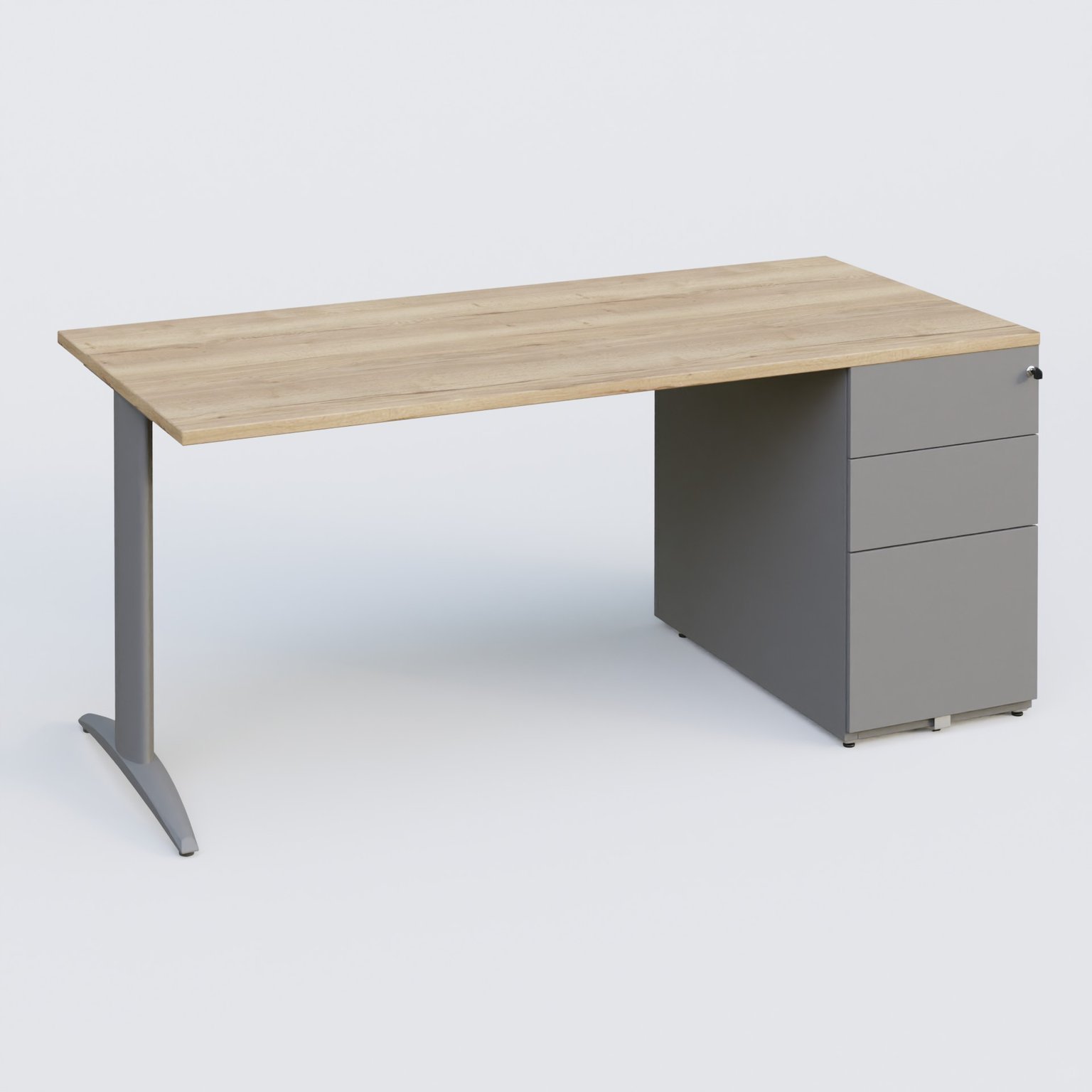 K2 Plateau droit 160x80 avec caisson métalique sous le plateau. Plateau Chêne naturel et pietement Aluminium