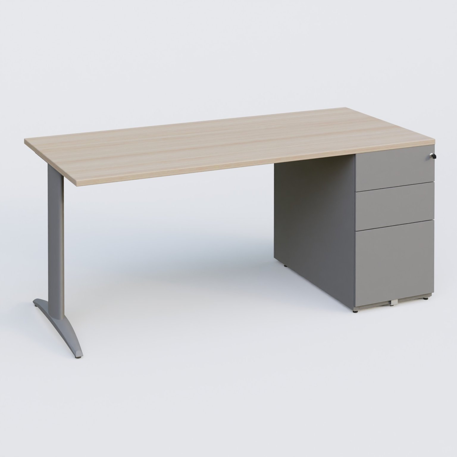 Le caisson métalique peut etre positionné à droite ou à gauche du plateau et remplace un pied.