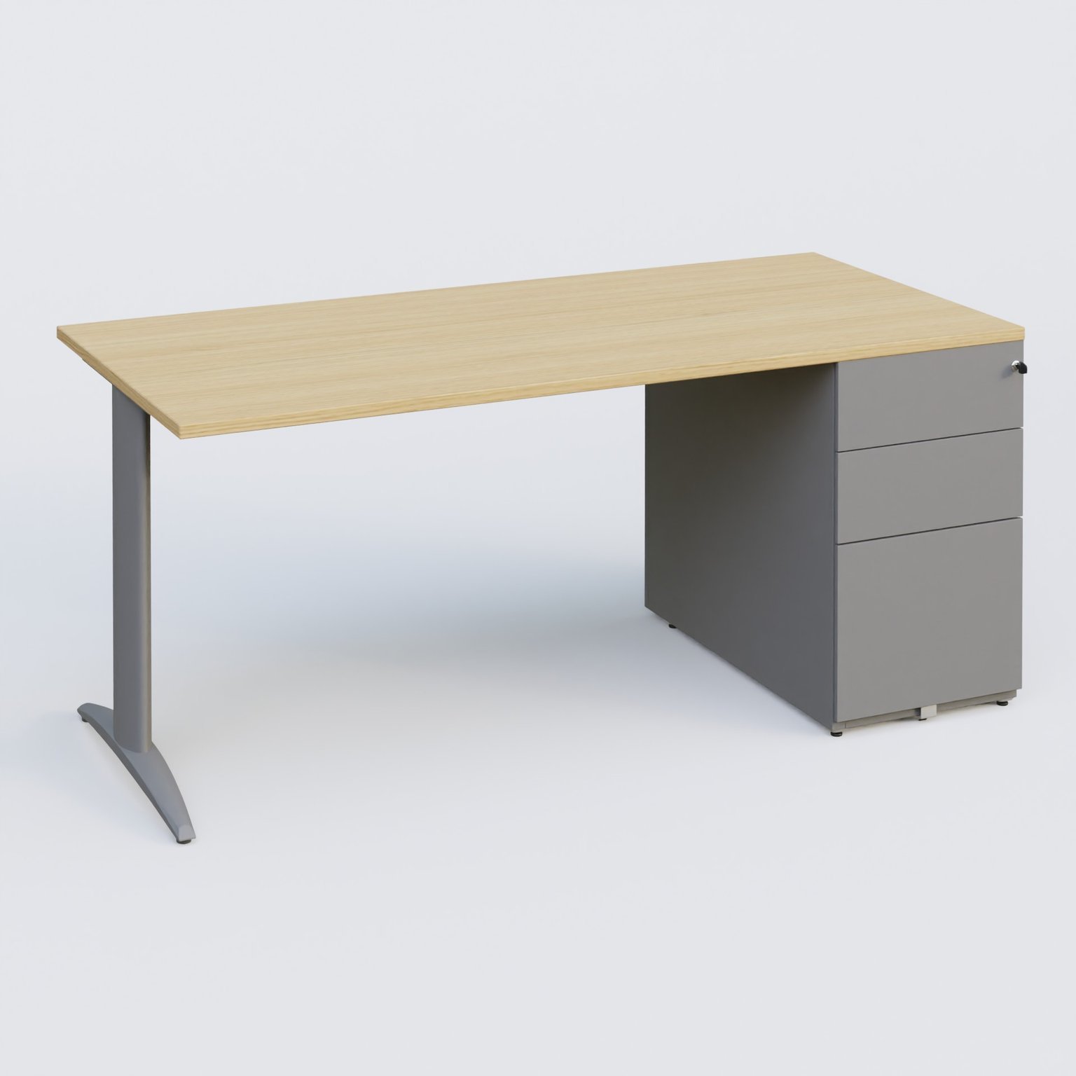 K2 Plateau droit 180x80 avec caisson métalique sous le plateau. Plateau Chêne clair et pietement Aluminium
