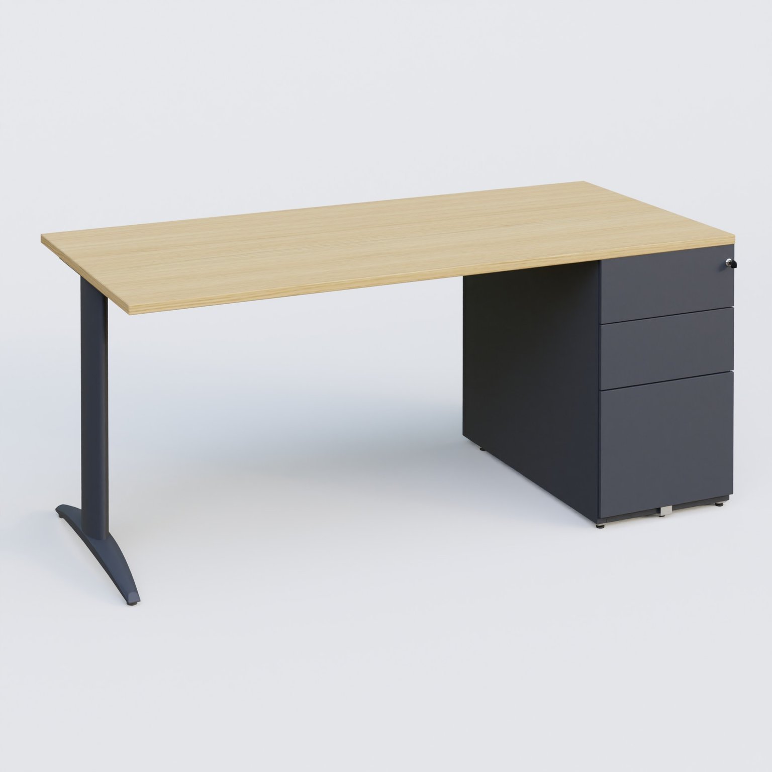 K2 Plateau droit 180x80 avec caisson métalique sous le plateau. Plateau Chêne clair et pietement Anthracite