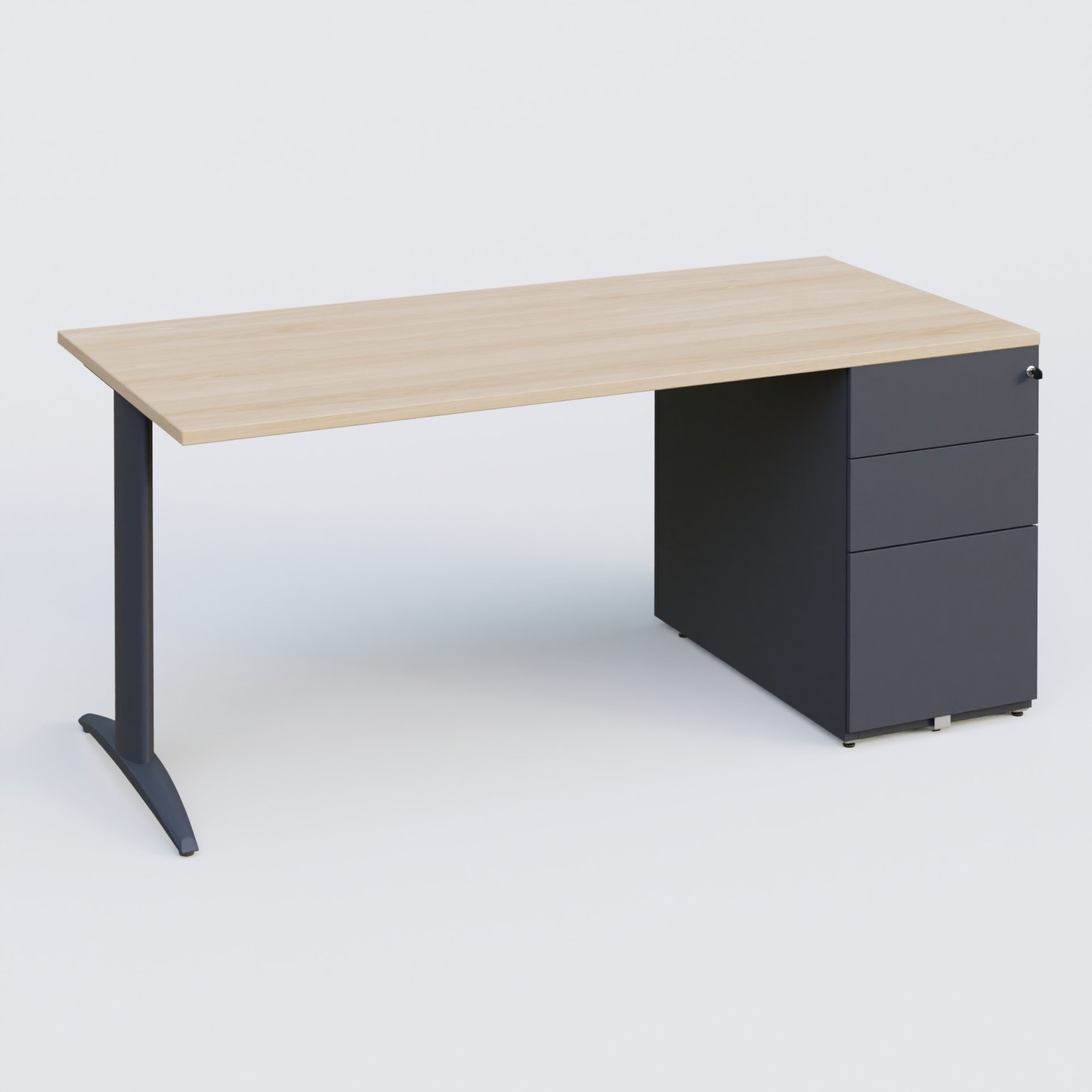 K2 Plateau droit 180x80 avec caisson métalique sous le plateau. Plateau Hêtre et pietement Anthracite