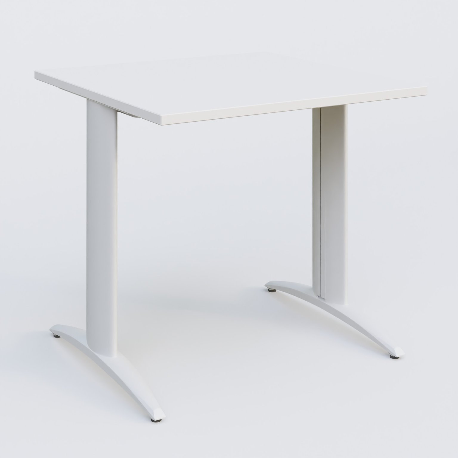 K2 Plateau droit 80x80 pieds fixe. Plateau Blanc et pietement Blanc.