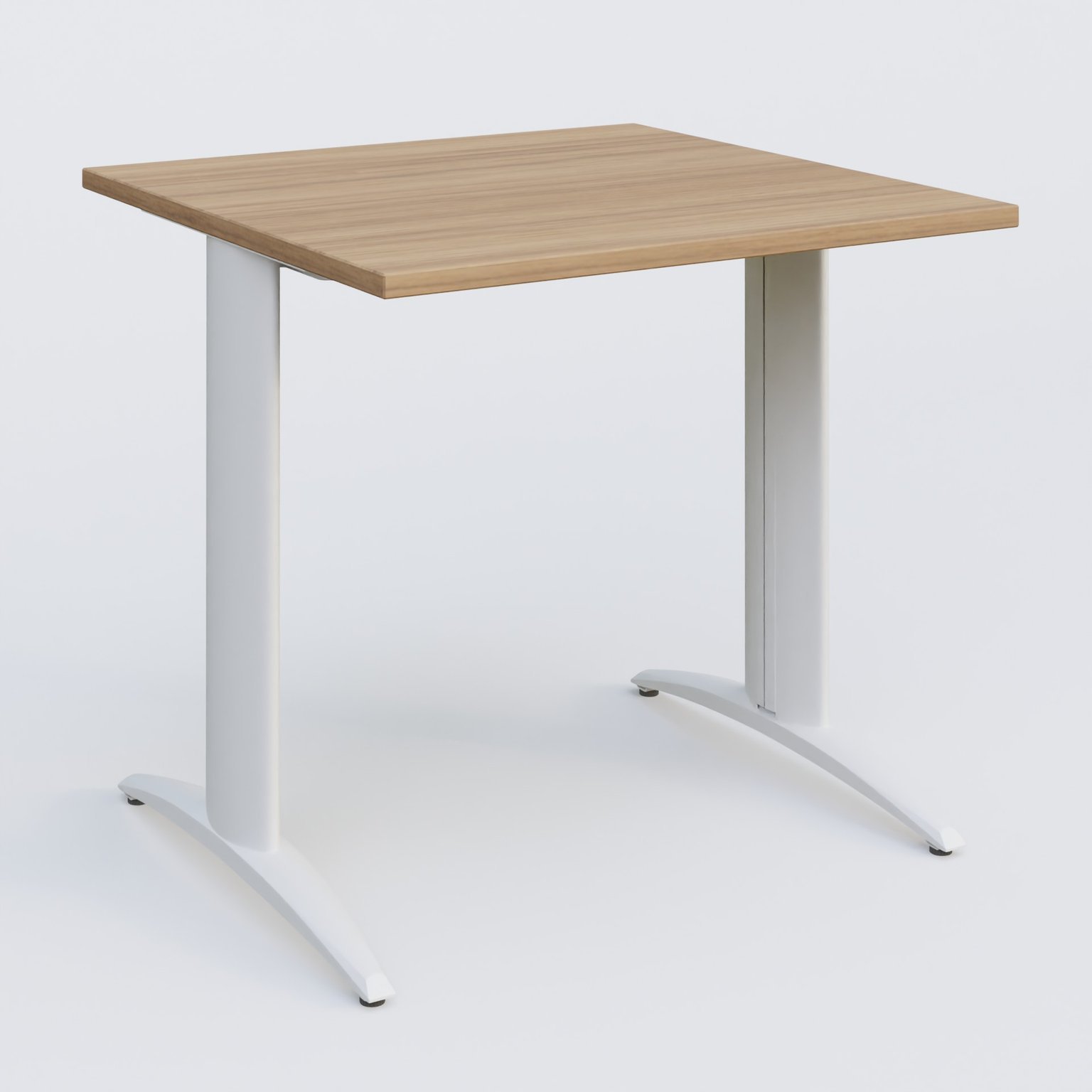 K2 Plateau droit 80x80 pieds fixe. Plateau Noyer et pietement Blanc.