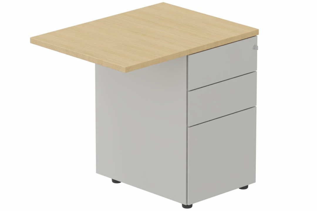 K2 retour direct 100x60cm sur caisson métal HB P.60cm 3 tiroirs, plateau chêne, structure Aluminium