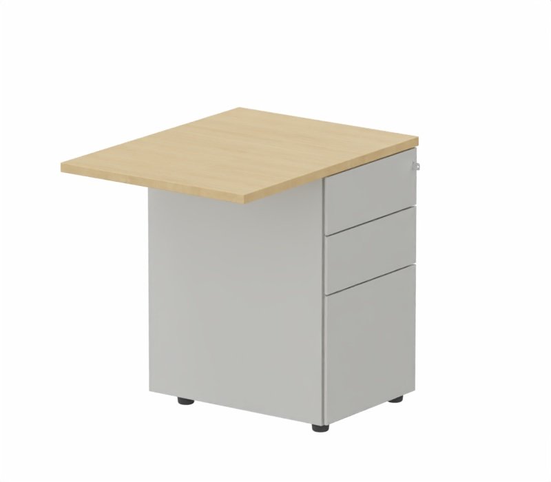 K2- Retour direct 80x60 sur caisson métal HB 3 tiroirs - Finitions = Plateau : Chêne (CE) / caisson : Aluminium