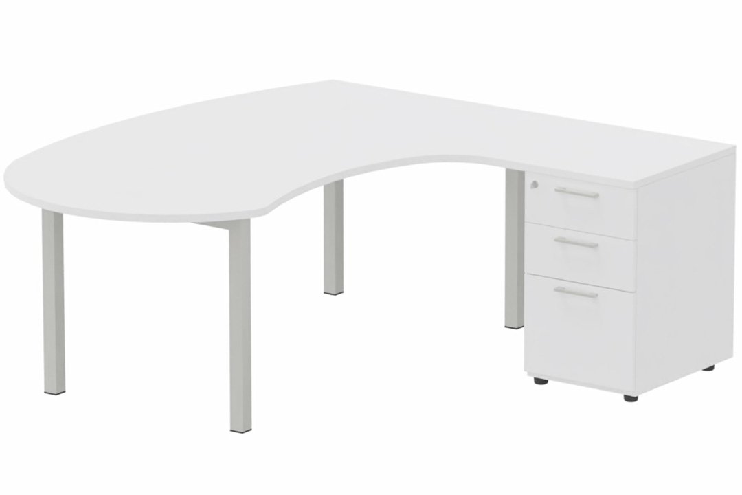 K3 compact 90° manager 190x141x104x60cm sur caisson HB mélamine 3 tiroirs, plateau blanc, structure aluminium