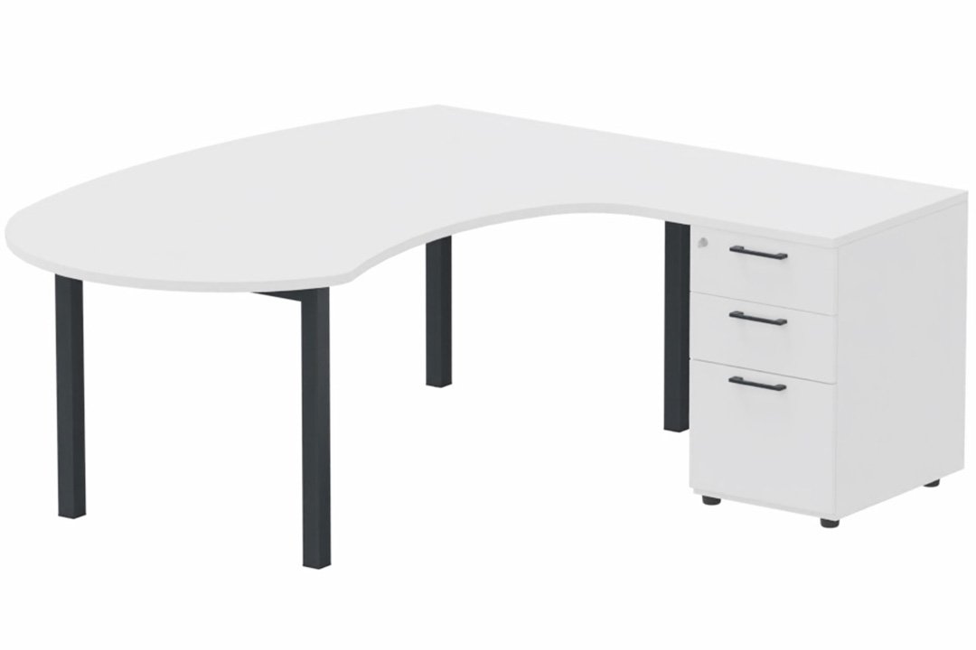 K3 compact 90° manager 190x141x104x60cm sur caisson HB mélamine 3 tiroirs, plateau blanc, structure anthracite