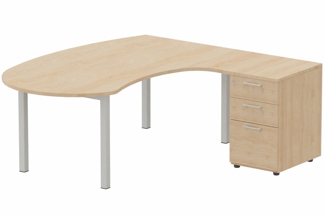 K3 compact 90° manager 190x141x104x60cm sur caisson HB mélamine 3 tiroirs, plateau hêtre, structure aluminium