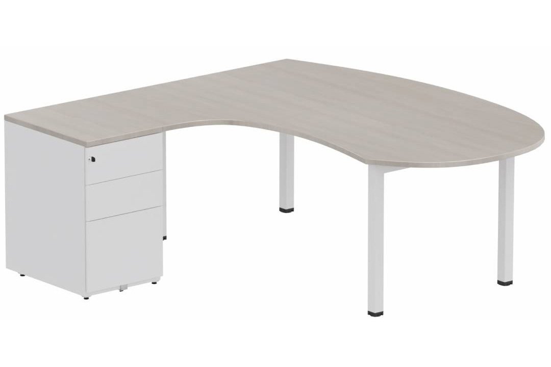 K3 compact 90° manager 190x141x104x60cm sur caisson HB métal 3 tiroirs, plateau acacia, structure blanc