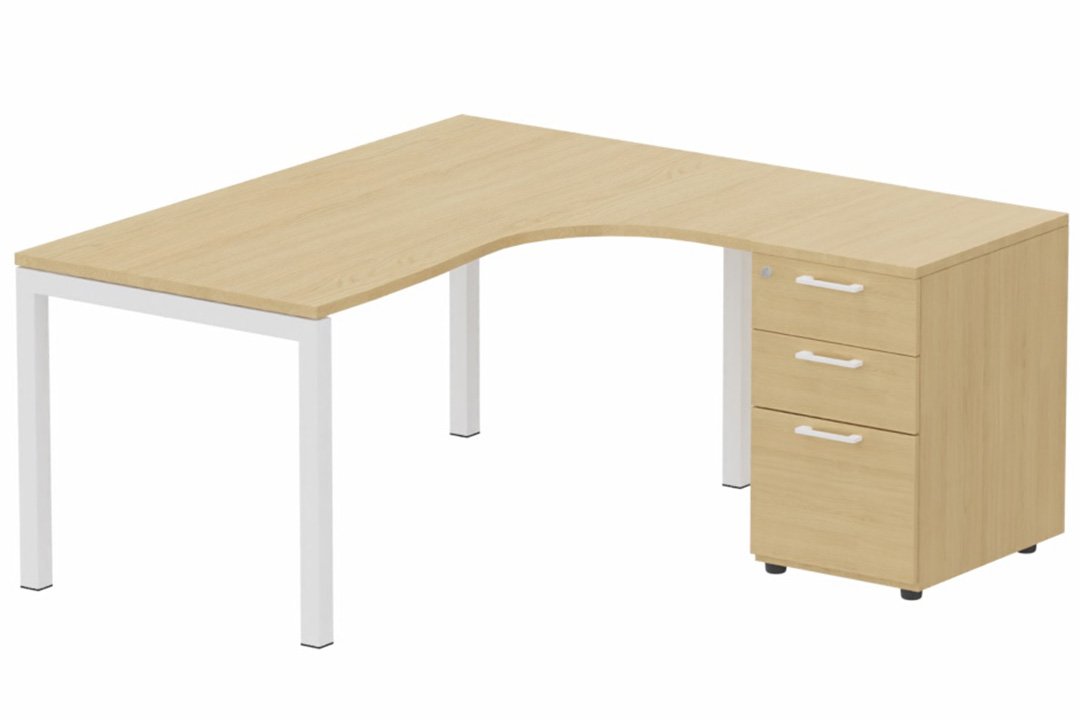 K3- Plan compact 90° asymétrique 160x162x80/60cm avec caisson HB bois 3 tiroirs - retour à droite