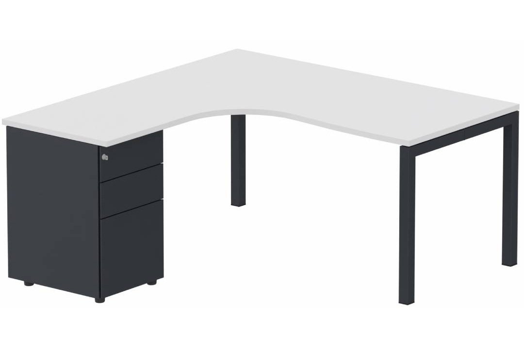 K3- Plan compact 90° asymétrique 160x162x80/60cm avec caisson HB métal 3 tiroirs - retour à gauche -Finitions : PLATEAUX: BLANC (BL) / PIETEMENTS: ANTHRACITE (AN ) / CAISSONS METALLIQUES: ANTHRACITE (AN)