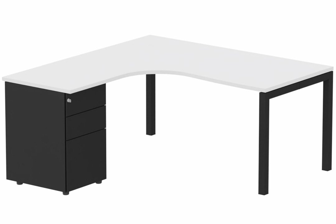 Plan Compact 90° asymétrique 160x162x80/60cm retour à gauche avec caisson HB métal 3 tiroirs blanc/blanc blancBl blancBl