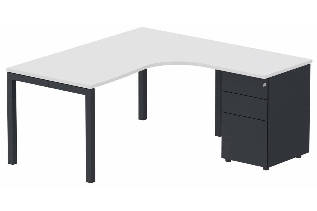K3- Plan compact 90° asymétrique 160x162x80/60cm avec caisson HB métal 3 tiroirs - retour à droite -Finitions : PLATEAUX: BLANC (BL) / PIETEMENTS: BLANC (BL ) / CAISSON METALLIQUE: ANTHRACITE (AN )