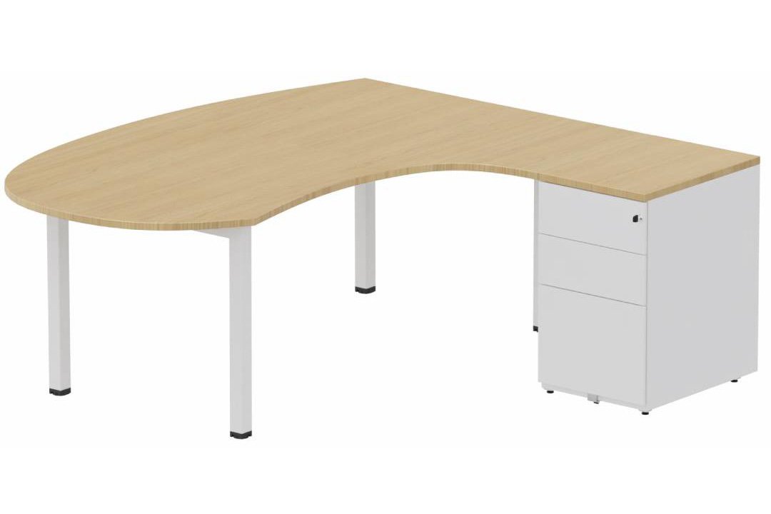 K3- Plan compact 90° asymétrique Manager 190x183x104x60cm avec caisson HB métal 3 tiroirs - retour à droite Finitions- Plateau et top caisson : Chêne (CE) / Piétements et caisson :Blanc (BL)